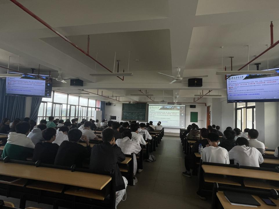 吴伟斌教授结合自己的科研课题,做了《广东省特种车辆电子产业技术现状与需求分析》和《丘陵山地茶园生产机械化研究与发展》两个主题报告。针对国产农机装备以及其他特种车辆存在的性能不稳定,电气化、智能化程度不高、无法很好适应广东作业环境等问题,介绍了多种特种车辆的电子化升级方法与技术,并与广大师生共享了发展建议。针对当前丘陵山地茶园生产的机械化问题,提出了陡坡茶园、缓坡茶园、平坡茶园的不同机械化作业技术模式,详细介绍了各种茶园耕作机械、捕虫机械、修剪机械、采茶机械等,展示了近五年的重点研究内容,引导同学们积极思考。