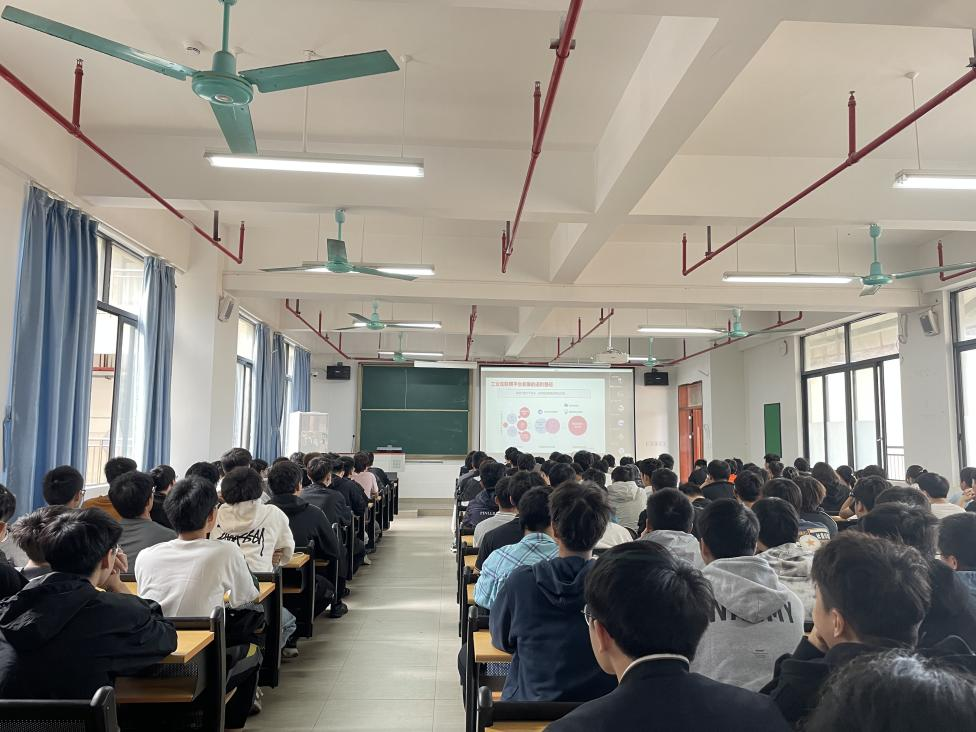 魏文锋院长围绕《工业机器人与协同制造网络构建》,提出了工业互联网平台发展的进阶路径,介绍了工业机器人应用、智能制造单元的调运、智能产线设计与集成、智能产线数字化仿真软件、MES,并讲解了协同制造网络构建典型案例。魏文锋高工长期在制造业一线岗位工作积累的丰富经验,其报告使师生们感到非常接地气,提高了对实践教学的认识,表示要脚踏实地在先进制造业贡献一份力量。