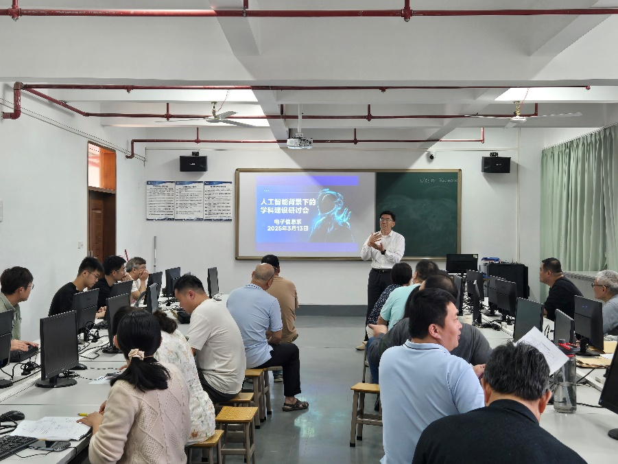 3月13日,在人工智能技术重构教育生态的背景下,122cc太阳集成游戏电子信息系于11号教学楼602召开专题研讨会,30余名教师围绕AI浪潮下的学科建设、专业改革、教学模式创新等核心议题展开深度研讨,形成了教师-AI-学生“三维一体”的教育改革方案。