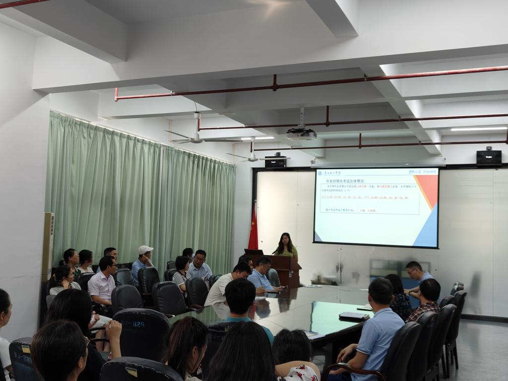 11月2日下午,122cc太阳集成游戏在工程楼211会议室召开了毕业班期末考试考务培训会。会议由教务秘书胡婉莹主持,学院全体教职工参加了会议。