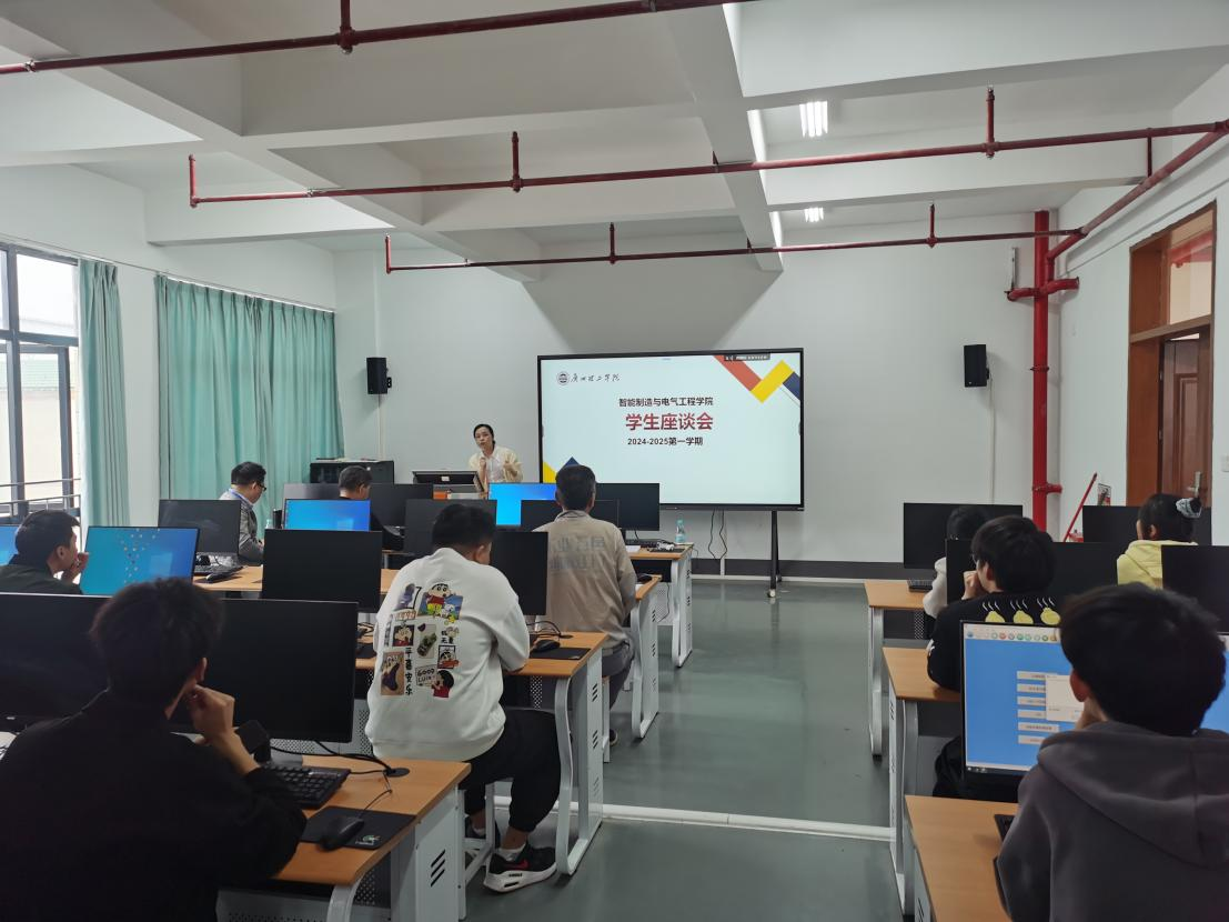 为总结教学情况和优化课程教学内容和方法,11月19日中午,机器人与人工智能系成功举办了2024-2025学年第一学期的学生座谈会。座谈会邀请到朱亚峰副院长、张德福系主任、周延周教授、龙海洪老师、贾林锋老师以及各专业班级的学生代表。此次座谈会在于深化与学生之间的沟通和理解,通过深入探讨学生在学术学习、日常生活以及个人发展等方面所遇到的难题和疑问。通过座谈会交流,不仅有助于学院更全面地洞察学生的真实需求,学生能够感受到来自教师的深切关怀和坚定支持,为构建一个更加和谐、互动的学习环境奠定基础。