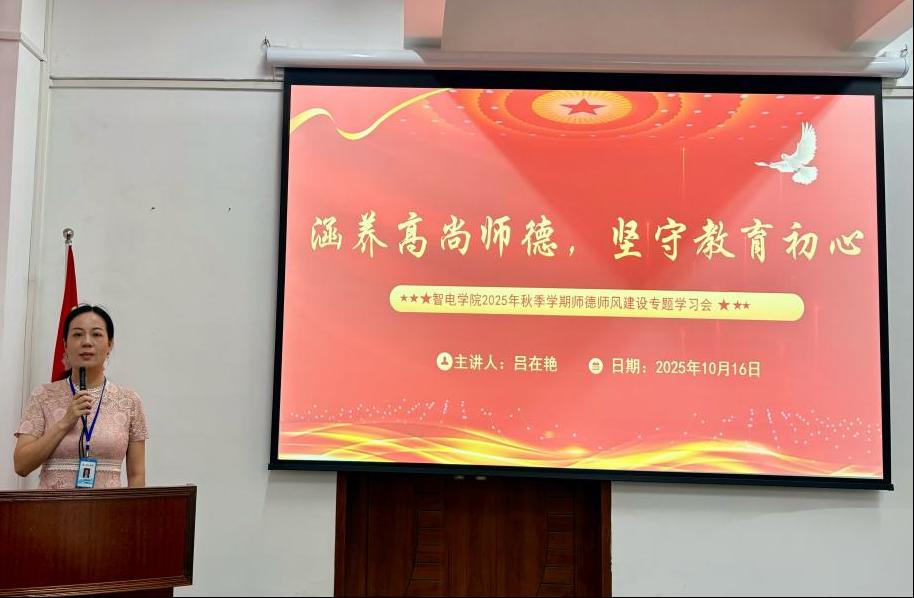 为全面加强新时代师德师风建设,2025年10月16日,我院召开了2025年秋季学期师德师风建设专题学习会。党总支书记吕在艳以“涵养高尚师德,坚守教育初心”为主题进行专题分享,我院全体教师参加了此次学习。
