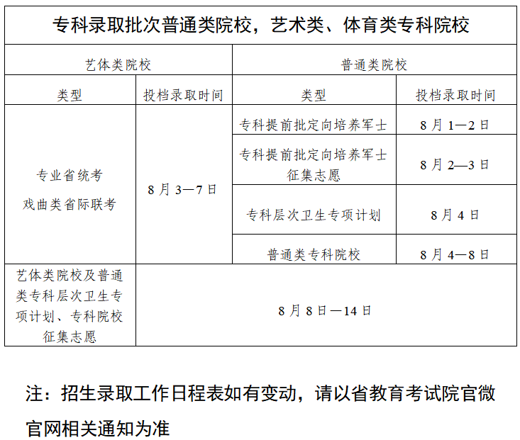 广东省2025年普通高校招生录取工作日程表