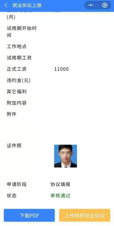 上传签字盖章的纸质就业协议书后,待院校审核完成自动生成带院校电子签章的电子就业协议书,院校和学生都可自行下载打印。