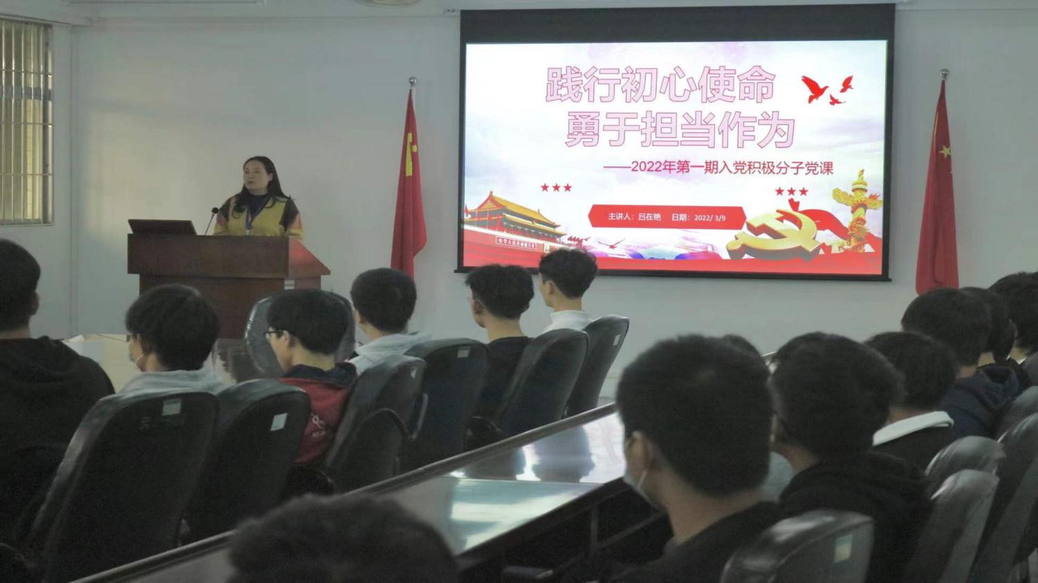 3月9日下午,为进一步端正入党积极分子的入党动机,我院党总支书记吕在艳在机电楼305为我院2022年第一期入党积极分子讲授主题为《践行初心使命,勇于担当作为》的党课。