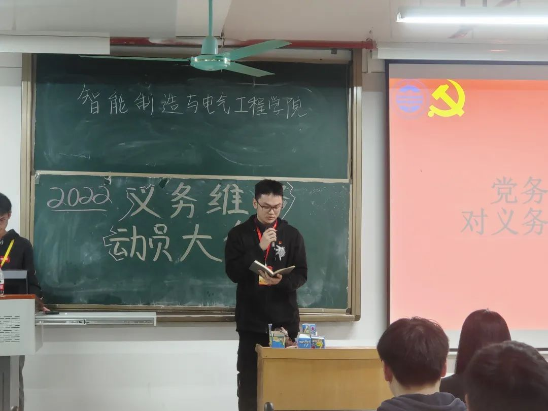 团总支组织部代表宣读工作安排,解读义务维修工作方案,希望参与义务维修的志愿者做到服务同学,学有所长,学有所用,回报社会,弘扬雷锋精神,把安全放在第一位,举手投足之间要文明礼貌,彰显我院学子风采。党务工作部代表潘展鸿作动员讲话。我们作为智能制造与电气工程学院的学生,更应结合自身专业和个人能力、学以致用,希望大家能够做好先锋榜样,在活动中落实为人民服务这一核心,参与并享受其中,在活动中帮助到他人,为全校师生服务,向全校师生呈现最好的一面。团总支组织委员黄教恒明确表示,义务维修活动是展现组织部门人员协调配合的有利契机,希望大家坚持以服务群众为中心,发扬雷锋精神,在全校师生面前做好榜样,为全校师生服务。