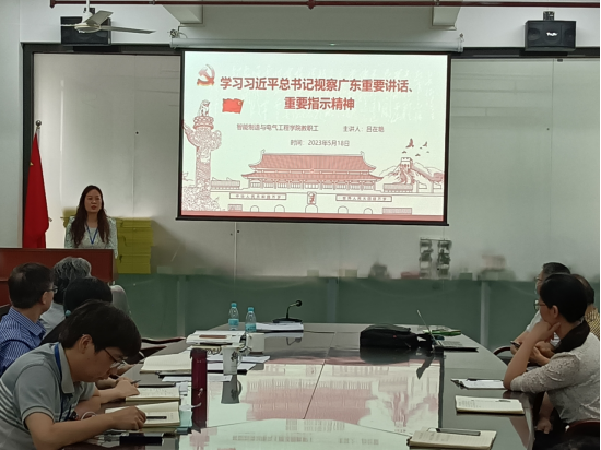 5月18日下午,智能制造与电气工程学院组织全体教职工,集体深入学习习近平总书记视察广东重要讲话、重要指示精神。本次集体学习由党总支书记吕在艳同志主持。