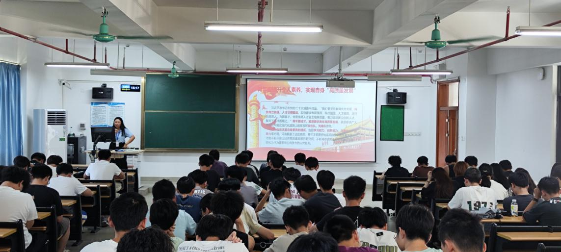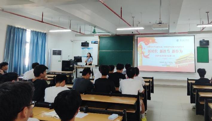 9月19日下午,智能制造与电气工程学院2024年秋季学期书记“思政第一课”在13栋603课室开讲。学院党总支组织员孟芳老师以《新时代、新担当、新作为》为题,为23级学生代表共130人讲授“思政第一课”。