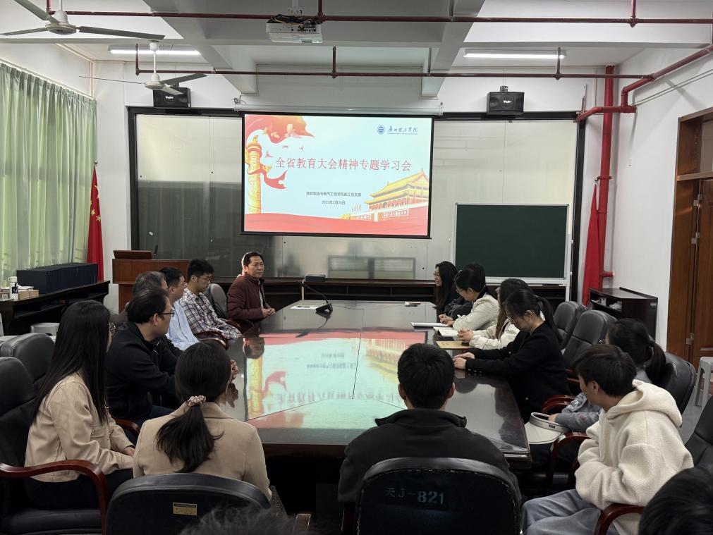 3月20日下午,智能制造与电气工程学院教工党支部于11栋教学楼211会议室开展全省教育大会精神专题学习会,全体教工党员参加学习。