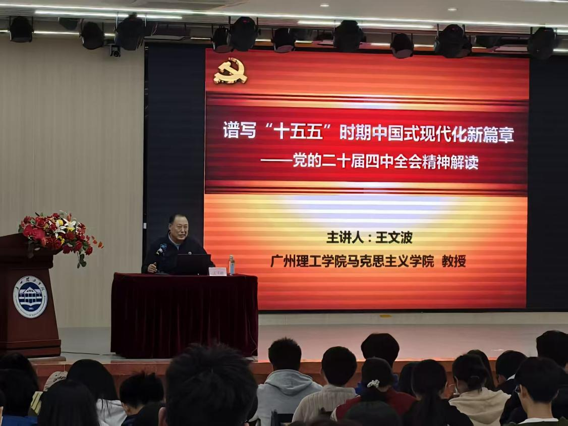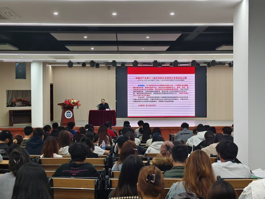 此次讲座旨在通过党的二十届四中全会精神解读与未来展望相结合的方式,引导学员深刻理解中国式现代化的核心要义,以学业追求契合学院建设步伐,明晰在校园发展新阶段的责任使命,践行青年担当。