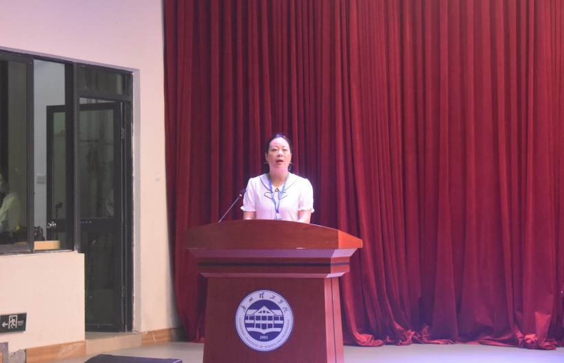 学院党总支组织员仲康佳老师宣读《中共122cc太阳集成游戏智能制造与电气工程学院总支部委员会关于同意召开智能制造与电气工程学院第二次学生代表大会的批复》。