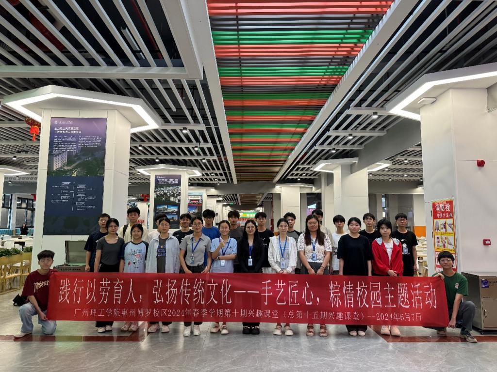 为弘扬中华传统节日文化,践行以劳育人与文化育人成效,同时为了让学生更好体验传统美食的制作过程,6月7日下午智能制造与电气工程学院20名余名师生代表在惠州博罗校区第一饭堂开展“践行以劳育人,弘扬传统文化——手艺匠心,粽情校园”主题活动。活动由辅导员谢燕惠老师、朱玲老师组织。