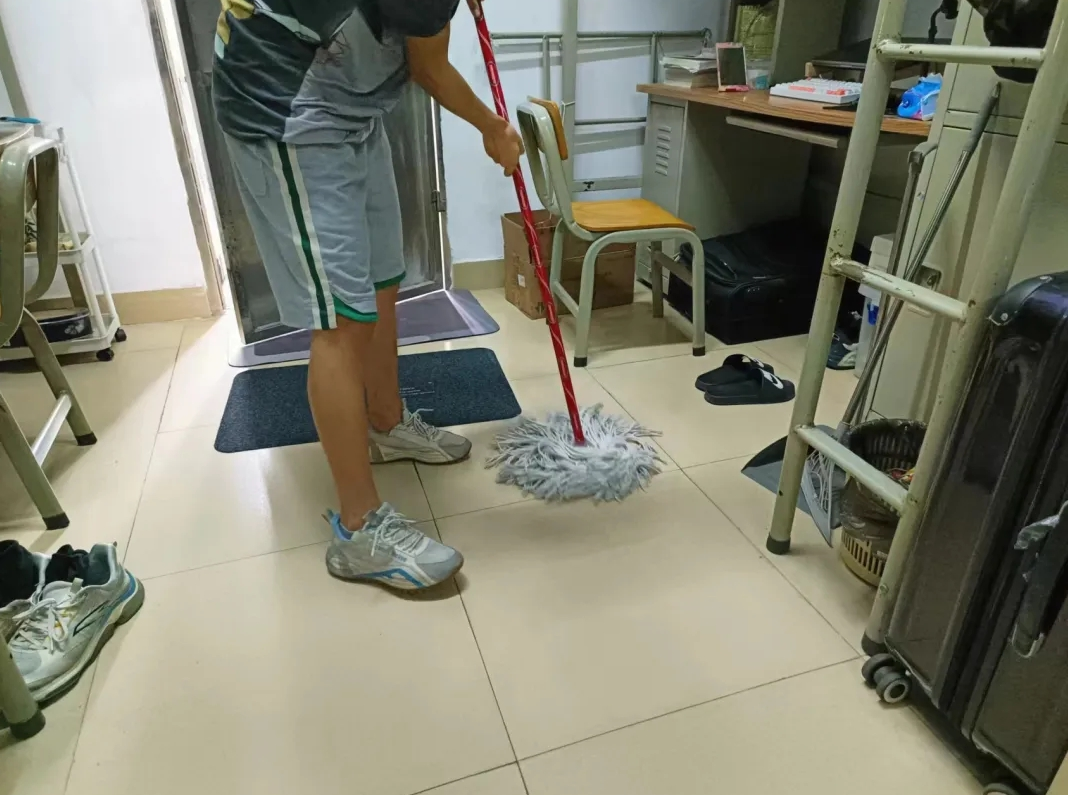 学生们在活动开始后,积极主动的进行分工合作:扫地拖地,保持地面干净;清理桌面物品,保持桌面整洁;擦窗户并通风,保持宿舍明亮清新;清理阳台厕所卫生死角,确保公共区域干净卫生。活动过程中,学生们分工明确,团结合作,充分体现友好互助的品质和良好的精神风貌。