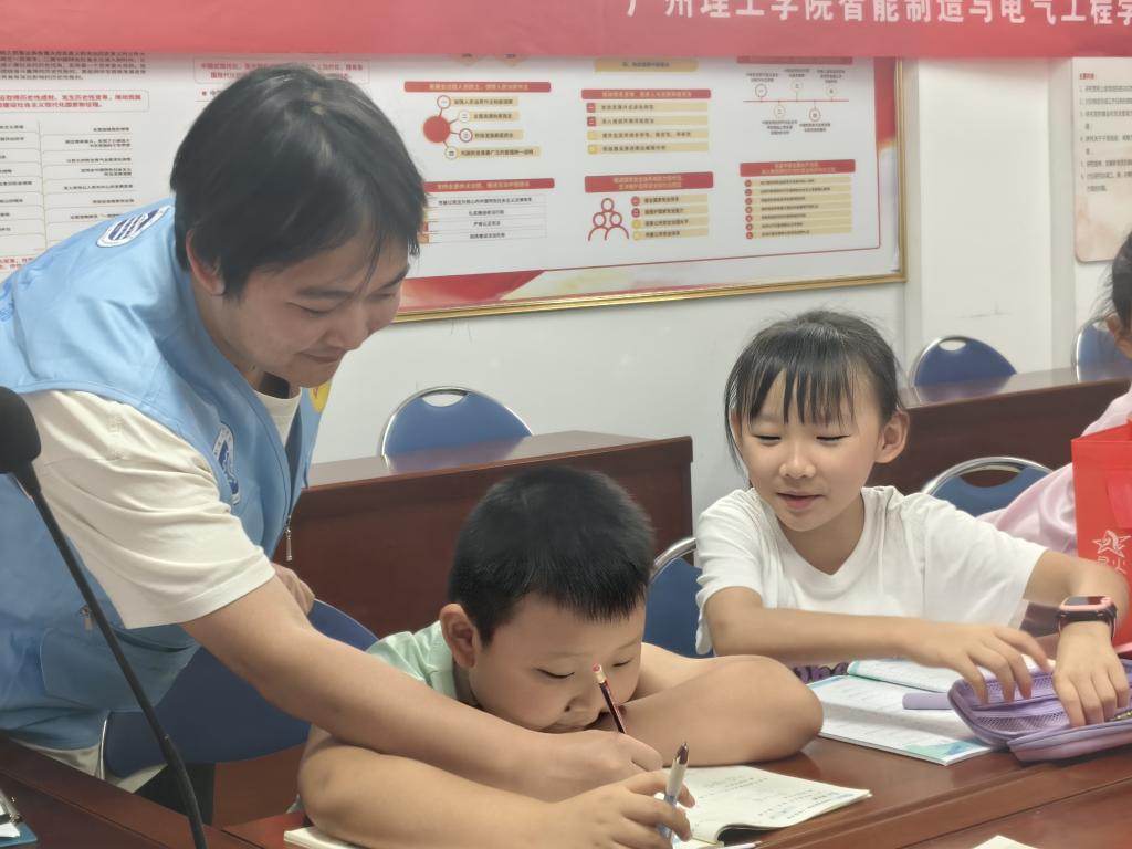 上午9点,广理“童心启航”实践队的师生们走进新世界社区,为这里的青少年们带来了贴心的作业辅导。面对孩子们在作业中遇到的各类难题——无论是语文的词句辨析、数学的逻辑推演,还是英语的单词困惑,实践队的师生们都给予了耐心细致的解答。 更重要的是,他们并未止步于“解决问题”本身,而是在辅导过程中主动引导孩子们摸索科学的学习方法:比如如何梳理知识框架、怎样高效记忆重点内容、如何借助错题总结经验等。通过这样的方式,帮助孩子们逐步养成专注、严谨、善思的良好学习习惯,为他们未来的学习之路筑牢根基,让每一步成长都更扎实、更从容。