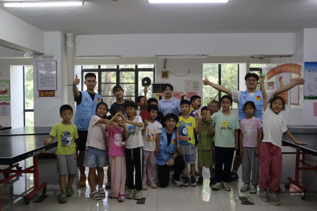 今日的活动如一场甘霖,滋润着孩子们的心田。作业辅导中,实践队师生不仅解疑释惑,更授人以渔,助孩子们养成良好学习习惯;普通话课堂上,趣味故事与互动练习交织,让孩子们在欢笑中领悟共讲普通话的意义,爱上这门通用语言;乒乓教学里,银球飞舞间满是欢乐与成长。这些活动,是知识的传递,是习惯的培养,更是爱的播撒。它让孩子们在社区的温暖怀抱中,既收获了学业上的进步,也感受到了运动的快乐与语言的魅力,更在心中种下了向阳生长、筑梦前行的种子,这正是 “童心启航” 实践队用行动诠释的责任与担当,让 “有爱伴成长,童心向阳筑梦想” 的理念在每一次互动中落地生根,绽放出助力青少年成长的绚丽光彩。