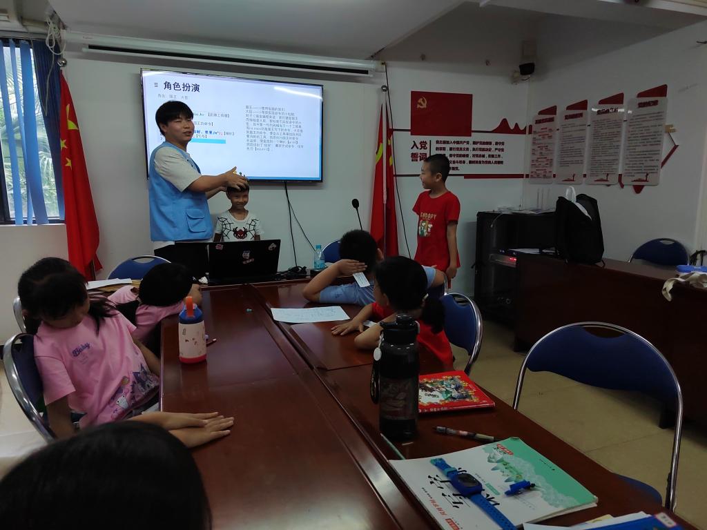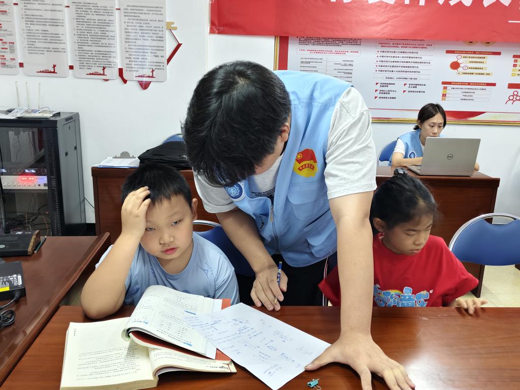 为继续帮助社区青少年解决学业难题,培养科学的学习方法,7月9日,广理 “童心启航” 实践队联合新塘新世界社区开展了 “解疑辅学业,开思助成长” 学业辅导活动,让孩子们在轻松的氛围中收获知识、提升能力。9 点刚过,背着书包的孩子们陆续走进活动室,手里攥着作业本,眼神里满是对知识的渴望。许多同学们遇到问题时都会积极举手请教各位老师,“这道数学题的解法怎么写”“这个汉字可以组成什么成语”,面对孩子们五花八门的问题,同学们没有直接给出答案,而是先引导他们梳理题干信息,回忆课堂上老师讲过的知识点,然后协助共同解答问题。此次活动不仅帮孩子们攻克了学业难关,更让他们明白了 “授人以渔” 的道理,为今后的学习之路注入了信心与动力。