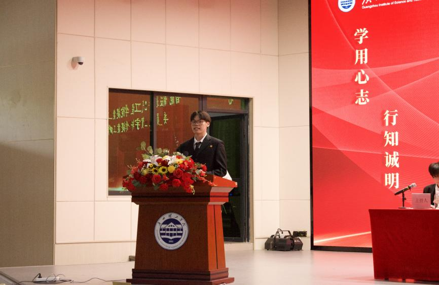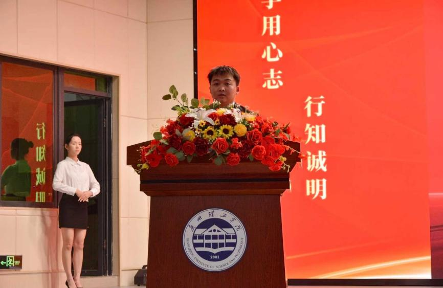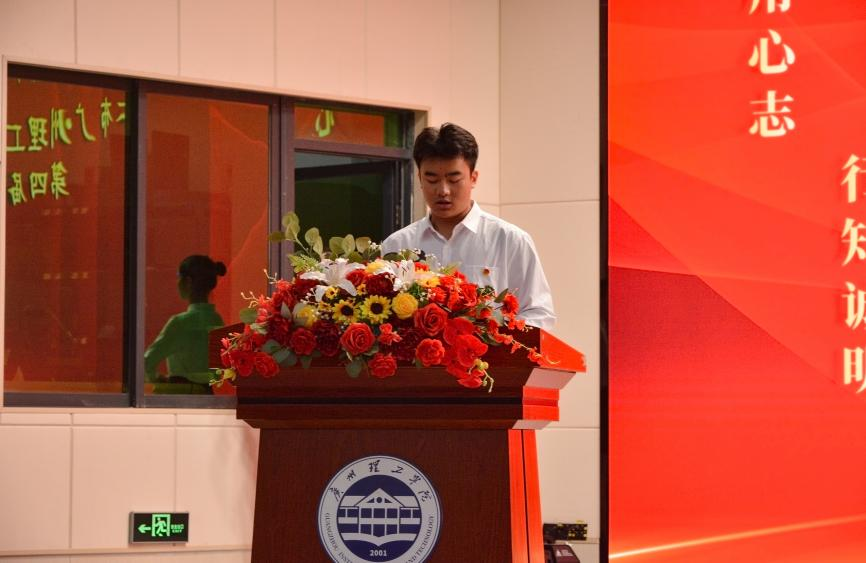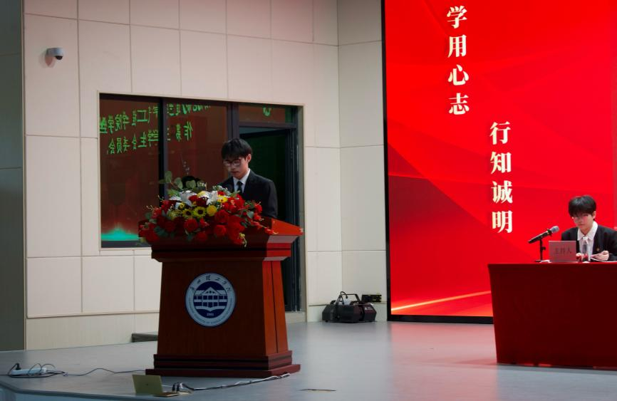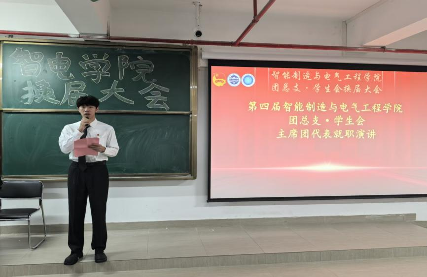 大会最后,第四届智能制造与电气工程学院团总支·学生会主席团代表张俊烯进行就职演讲。首先,他感谢往届师生的贡献,承诺将满怀热情履行职责。然后,他提出新学年学生会的四大工作方向:一是加强组织作风建设二是推进学风建设三是做好内部协调、加强与兄弟组织交流,力争带领学院学生会再上新台阶。最后,他祝愿智能制造与电气工程学院团总支·学生会将越来越好!