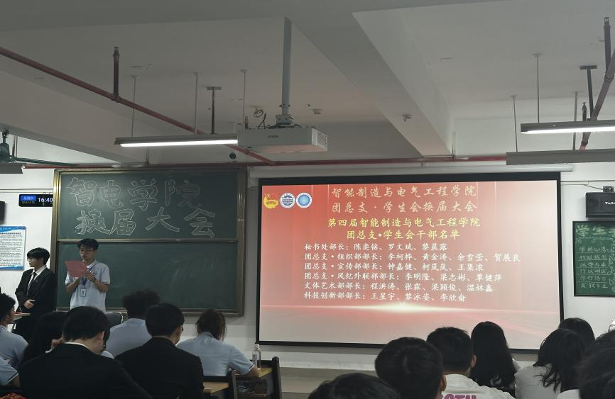 会议首先介绍了到场领导及嘉宾,智能制造与电气工程学院院长李玉忠、智能制造与电气工程学院党总支书记吕在艳、智能制造与电气工程学院党总支副书记刘紫云、计算机科学与工程学院党总支副书记叶智颖、智能制造与电气工程学院党总支组织员张康、智能制造与电气工程学院团总支书记殷亚月、校学生会主席团代表章丽璇、学院辅导员、院学生会主席团成员、团总支·学生会全体成员以及各班学生代表出席本次会议。