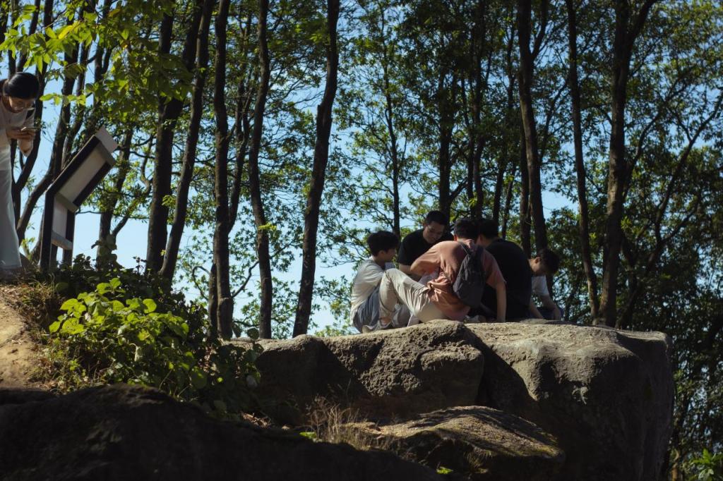 同学们走出校园,在温暖的阳光照耀下,迈着轻盈而坚定的步伐,走进了生态公园。一路上,大家被美丽的自然景色所环绕,呼吸着清新的空气,感受着大自然的美好。同学们一边欣赏着公园内的花草树木、湖光山色,一边热烈地交流着最近学习上的收获和生活中的点滴趣事,笑声和讨论声此起彼伏。临近终点时,同学们依旧精神饱满,脸上充满笑容。到达山顶,大家站在观景台看远处的风景,一起拍合照。
