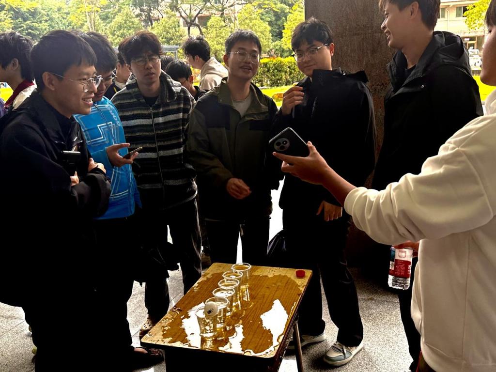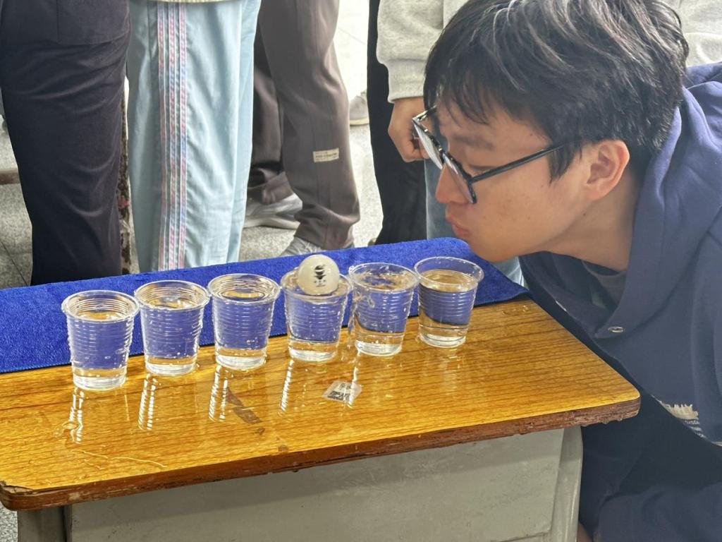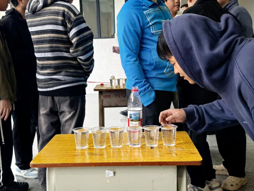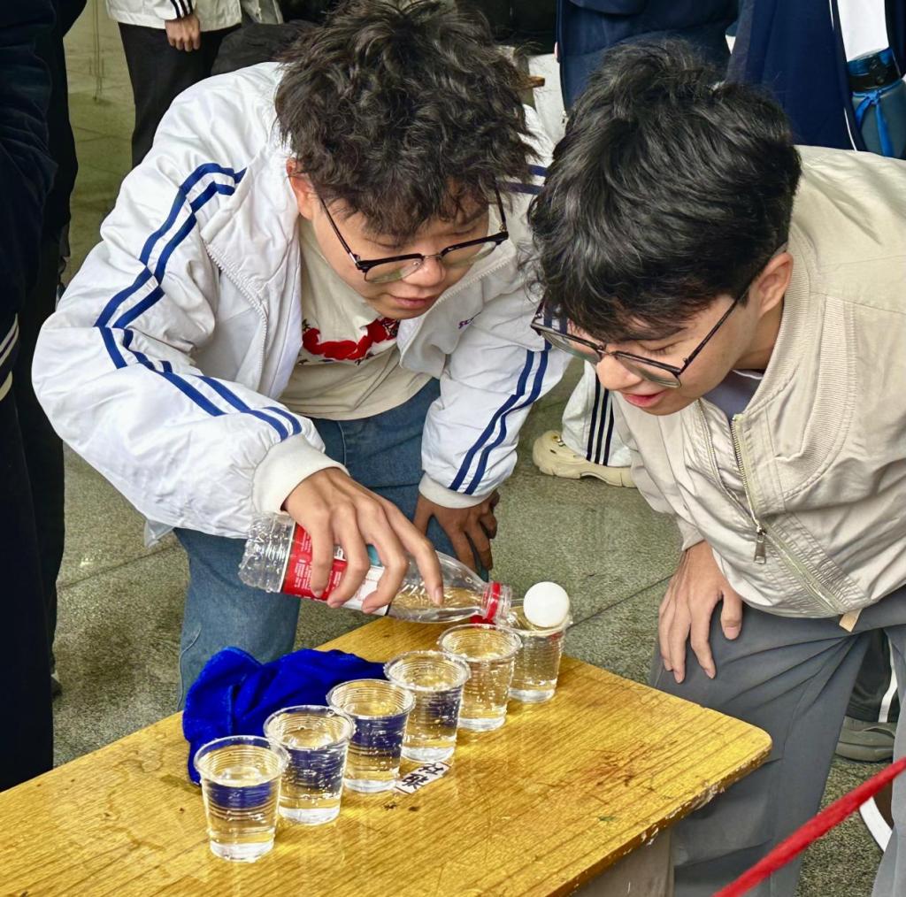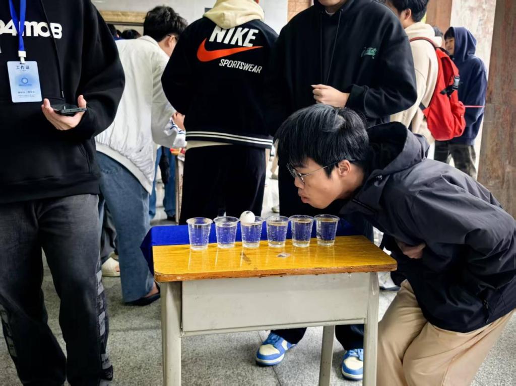 活动以5人自由组队为单位,每8队为一组展开竞技。比赛中,各参赛队伍精神饱满,队员们默契配合,接力吹乒乓球穿越水杯。现场气氛热烈非凡,加油声、欢呼声此起彼伏。选手们屏气凝神,精准控制气息,时而小心翼翼调整角度,时而快速发力推进乒乓球,展现出良好的竞技状态和团队协作能力。同时,大家在轻松愉快的氛围中不仅锻炼了肺活量和专注力,更深刻体会到团队协作的重要性。