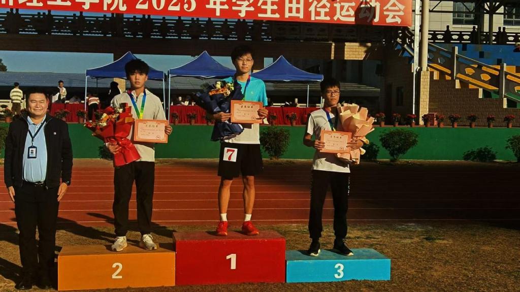 赛场上,我院运动员们是当之无愧的明星。他们用汗水浇灌梦想,用拼搏书写青春,在多个项目中取得了历史性突破。其中,刘智聪在男子400m中荣获第五名;李敏悦在女子400m中荣获第六名;刘容鸣和庞晓明在男子跳远中分别荣获第三和第四名;梁诗滟在女子跳高中荣获第一名;戴源、张家政和何玉琪在男子1500m中荣获第一名、第二名和第五名;姜笑含在男子铅球荣获第五名;梁诗滟和丘诗琳在女子跳远中荣获第一名和第五名;黄海媚在女子1500中荣获第四名;李耀腾,刘梓航和徐子祥在男子跳高中分别荣获第三名、第四名和第八名;尹雪蓉在女子800m中荣获第六名;丘诗琳在女子三级跳中荣获第五名;谭雨阳、黄俊杰和林港泰在男子三级跳中分别荣获第五名、第六名和第七名;学院总体荣获男子4*400m第三名、男子4*100m第三名、女子4*400m第七名和女子4*100m第八名。