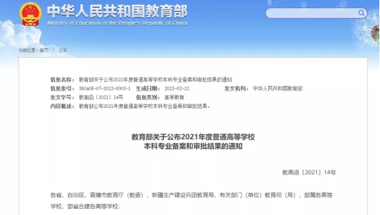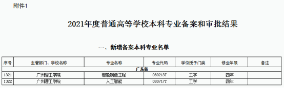 近日,教育部发布《2021年度普通高等学校本科专业备案和审批结果的通知》,我院申报的智能制造工程、人工智能2个本科专业成功获批。