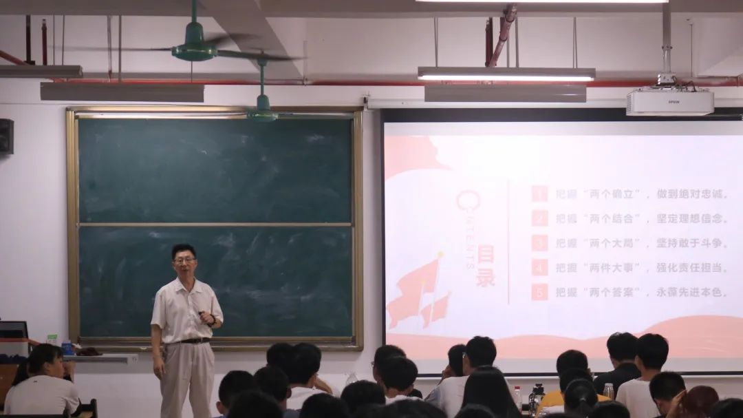 20日下午,李玉忠院长以“学深悟透《习近平谈治国理政》第四卷 ”为题讲课。他指出,《习近平谈治国理政》第四卷集中展示了马克思主义中国化时代化的最新成果,充分体现了我们党对构建人类命运共同体、共建美好世界的最新贡献,是全面系统反映习近平新时代中国特色社会主义思想开辟新境界、实现新飞跃的权威著作。要通过研读这本著作,深刻领会“两个确立”的决定性意义,不断增强“四个意识”、坚定“四个自信”、做到“两个维护”,推动党的创新理论武装入脑入心、有力有效、走深走实,转化为奋进新征程、建功新时代的实际行动,以优异成绩迎接党的二十大胜利召开。他寄语同学们:坚持科学技术学习和思想作风建设是我们大学同学们的基本任务和主旋律。我们国家将来的发展,靠年轻人的科学技术,我们国家的民族文化、精神思想,靠年轻人去传承。大学生肩负着国家的未来,人民的希望。我们一定不能辜负祖先和人民对我们的期望!