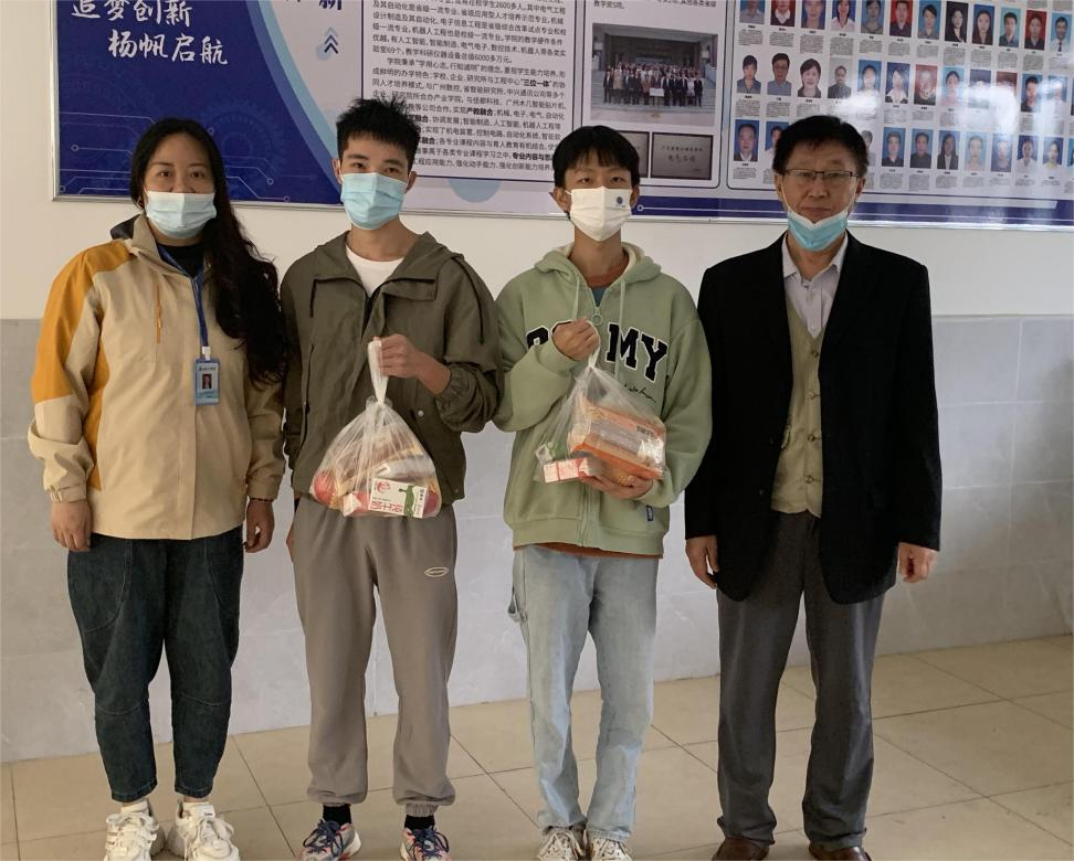 11月30日,为筑牢疫情防控安全堡垒,用暖心行动落实疫情防控工作,122cc太阳集成游戏院长李玉忠、党总支书记吕在艳、全体辅导员老师、学生志愿者们于工程楼2楼为全院同学发放防疫爱心礼包。