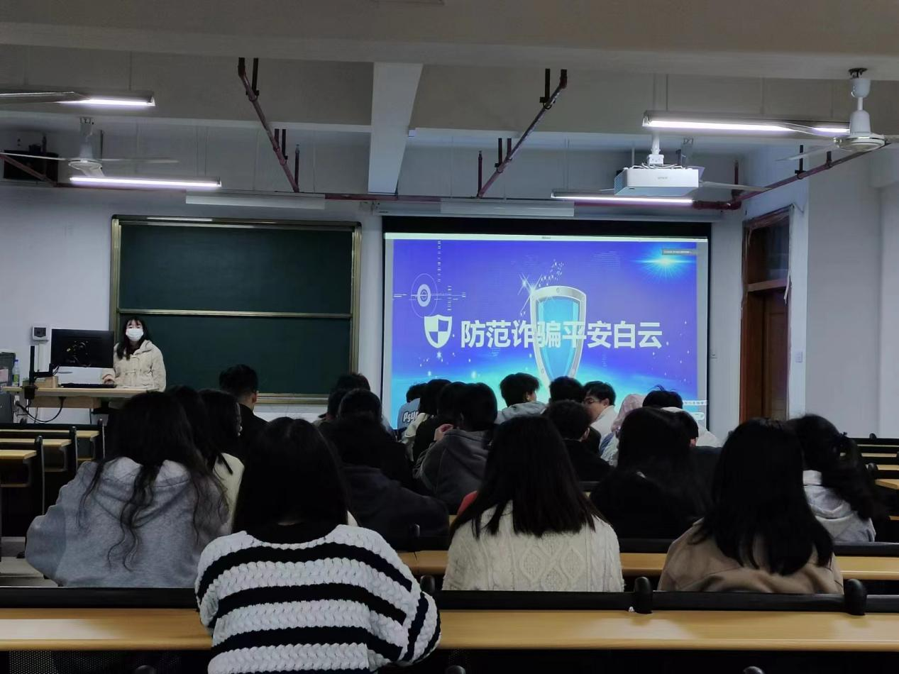 首先,太和镇派出所钱所长以大量真实案例为基础,为大家详细讲解了电信诈骗方式、套路、危害以及在遇到诈骗事件后如何进行快速处理。接着,张小英警官从高校学生易发生的兼职刷单诈骗、冒充客服诈骗、贷款诈骗等诈骗类型入手,通过以案说法的形式,为学生们详细讲述了诈骗分子惯用的诈骗手段,提醒大家不轻信、不转账、不透漏,筑牢心理防线。最后,各班辅导员老师结合近期的诈骗案例,逐一进行讲解,提醒同学们要提高警惕,及时做好防范。