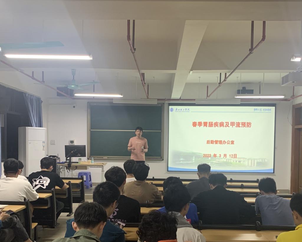 3月12日晚,为加深学生对甲型流感预防与治疗的认识,提高传染病防控意识,鼓励同学们养成有效预防甲型流感的生活习惯,我院在13栋教学楼召开班会,班会由辅导员老师主持,全体学生参会。