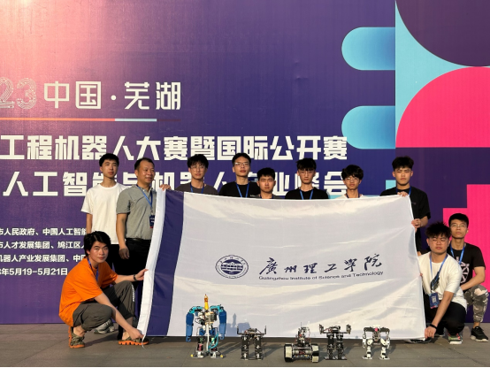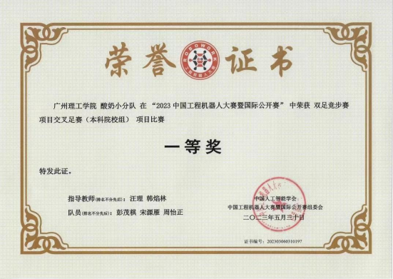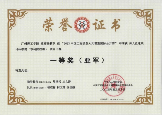 该项赛事是国内规模最大、具有重要影响力的综合类机器人创新大赛,共设22个项目51个赛道,吸引了包括清华大学、南开大学、天津大学、哈尔滨工业大学、山东大学、四川大学、东南大学、大连理工大学、暨南大学、广东工业大学等147所高校院所、1702支代表队、6000余名选手同台竞技角逐。周书兴和王文涛老师指导的"蟑螂恶霸"队(钱程彬、柯文耀、徐世强)在仿人竞速项目标准赛(本科院校组)项目比赛中获得一等奖,并荣获亚军;汪理和韩焰林老师指导的"酸奶小分队"(彭茂棋、周怡正、宋源雁)在双足竞步赛项目交叉足赛(本科院校组)项目比赛中荣获一等奖;鄢圣杰和王如意教师指导的“一往无前”队(章子杰、梁洪铬、廖金鑫)在双足竞步赛项目窄足赛(本科院校组)项目比赛中荣获一等奖;汪理和韩焰林老师指导的“一直拔萝卜”队(张佳耀、黄哲曦、何梓健)在工程越野赛项目对抗赛(本科院校组)项目比赛中荣获三等奖。
