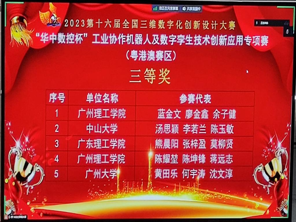 我校派出了5支参赛队伍,分别由王如意、鄢圣杰、高波、李玉忠、陈玉连5位老师指导的梁洪铬代表队、徐寒冰代表队、蓝金文代表队、杨骁代表队、陈耀堃代表队参加比赛。他们在数字孪生、PLC、三维画图软件等方面深入学习,掌握了仿生机械臂的操作步骤和使用原理。在比赛中,他们秉承科学严谨、团结细致、勇攀高峰的精神,坚持斗志昂扬,最终获得了3个二等奖和2个三等奖,成绩优异。