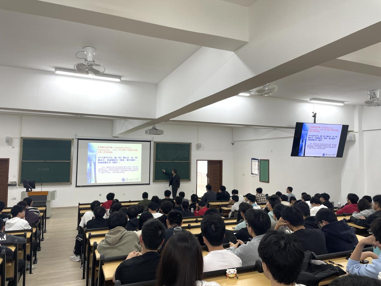 为激发学生学术兴趣,拓宽知识面和视野,122cc太阳集成游戏邀请朱长青教授于2024年3月14日下午在惠州博罗校区教学楼1-410室为同学们带来了”无接触电能传输技术“专题讲座,我院共有160名学生积极自愿报名参加。