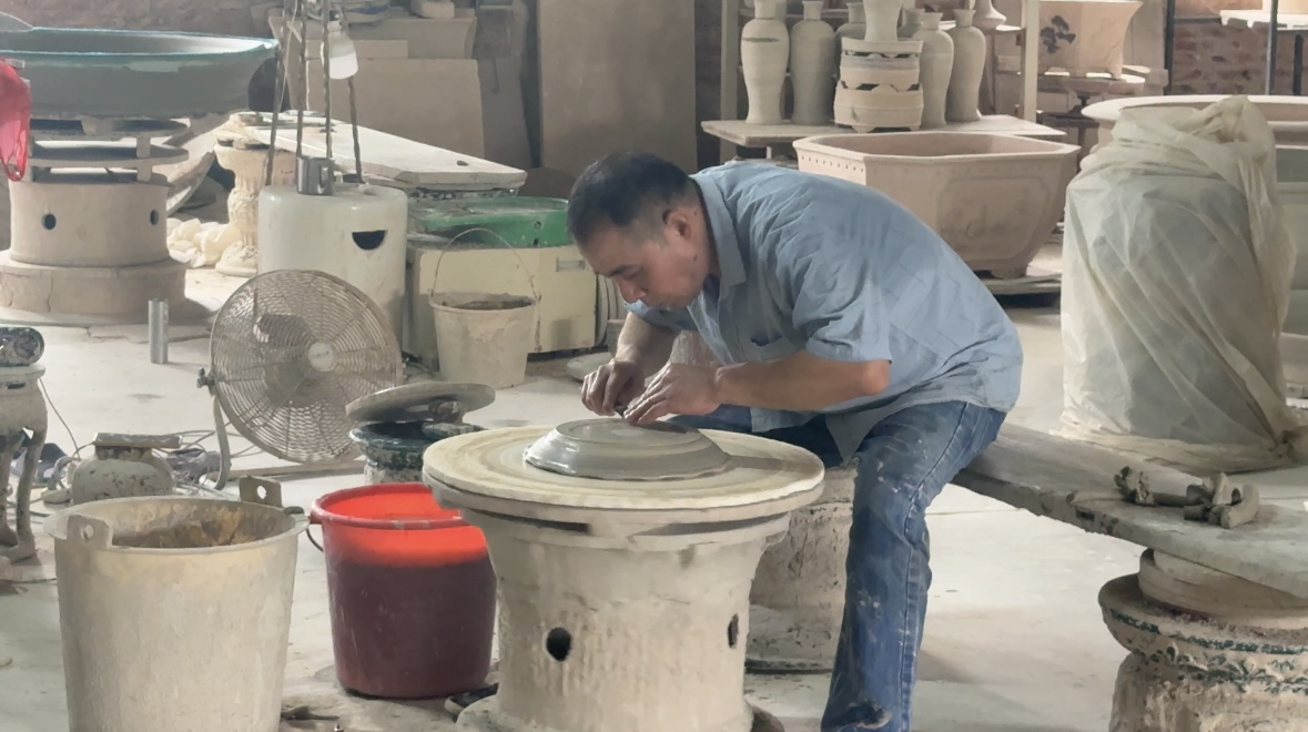 5、手工拼装区,师傅们将各个部件巧妙地拼接在一起,让陶塑逐渐展现出完整的形态。