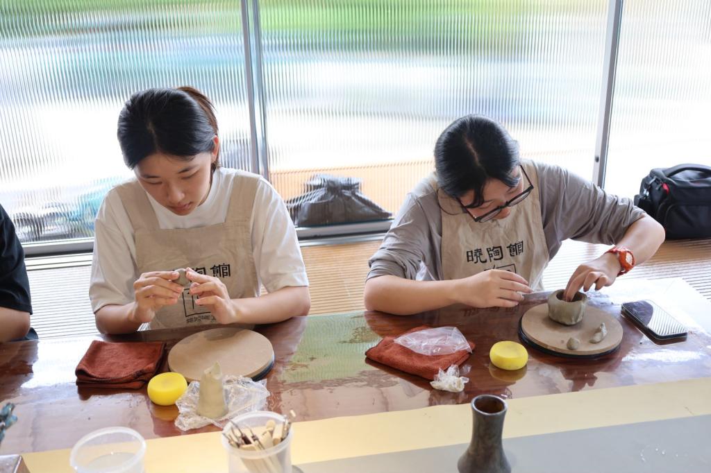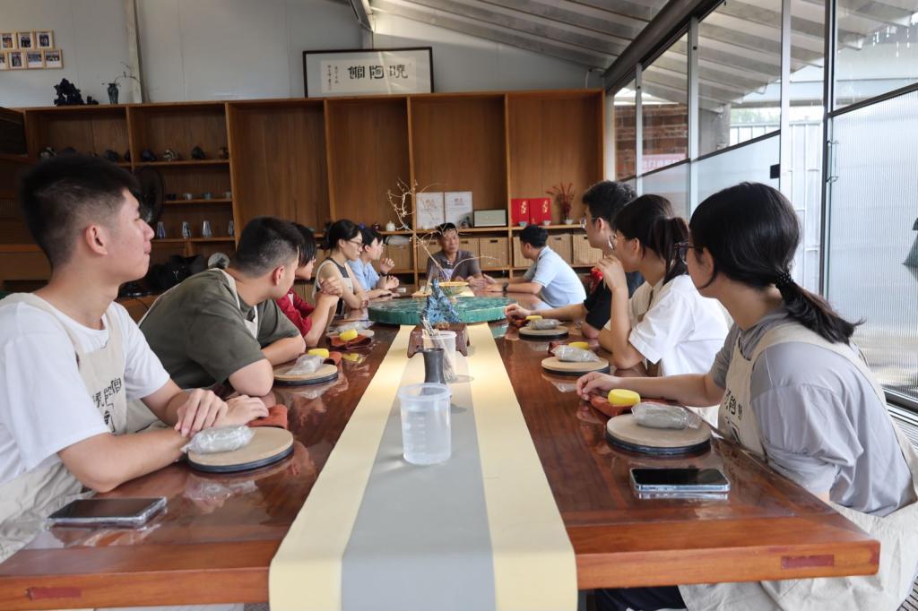 为了更深入地感受陶塑艺术的魅力与内涵,实践队成员亲自参与到陶塑的制作过程中。在何晓桦师傅的指导下,学生们从和泥、塑形开始,用心感受泥土在手中的变化,仿佛在与手中的陶土对话。当作品逐渐成型,学生们不仅收获了亲手创作的喜悦,更深刻地领悟到陶塑艺术的不易与精妙。