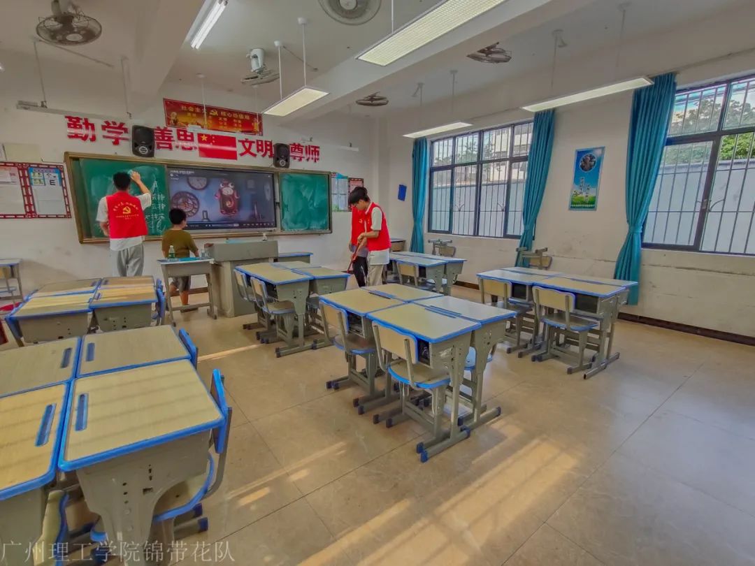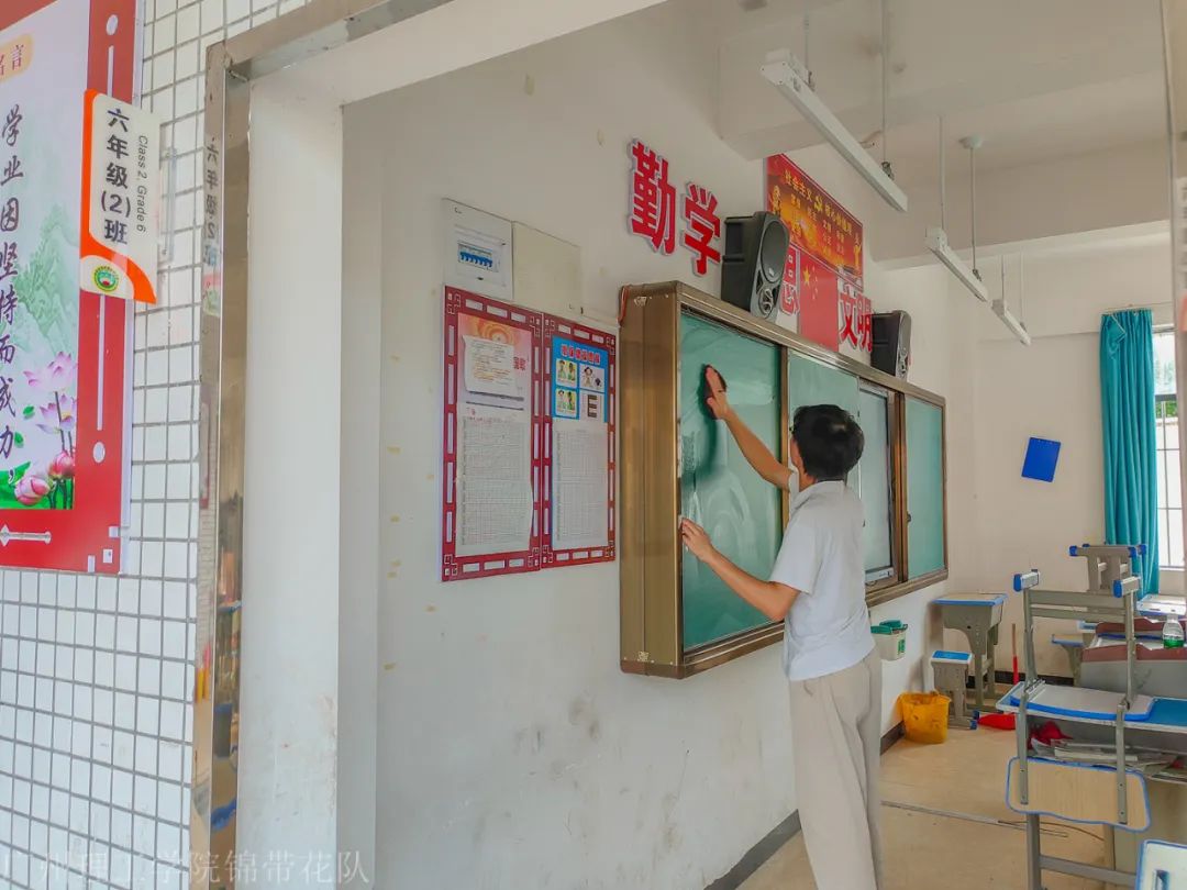早晨,到达云岭小学六年级2班的教室后,队员们在队长杨权睿的带领下,有条不紊地对上课教室进行了彻底的卫生打扫和教室座椅的摆放布置,为小朋友们营造一个温馨的上课环境。