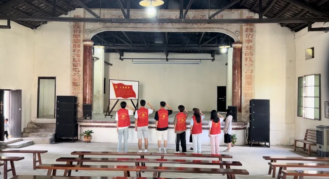 人民会堂内,突击队成员紧握右拳,在朱颖老师和高秀婷老师带领下,重温入党誓词,牢记初心使命。创想突击队第二天的行程既有传统手工制作,又有地方实地研学,切实将深入学习中华优秀传统文化融入实践过程,让小朋友们在动手感受文化魅力的同时播种了爱与希望的种子,也进一步加深了团队成员对龙村镇的历史发展和文化底蕴的认识。实践团将以此次研学为契机,将所获取的知识、素材融入接下来的支教课程,并将研学的精神成果转化为扎实推进实践的动力,为推动乡村振兴作出应有贡献。