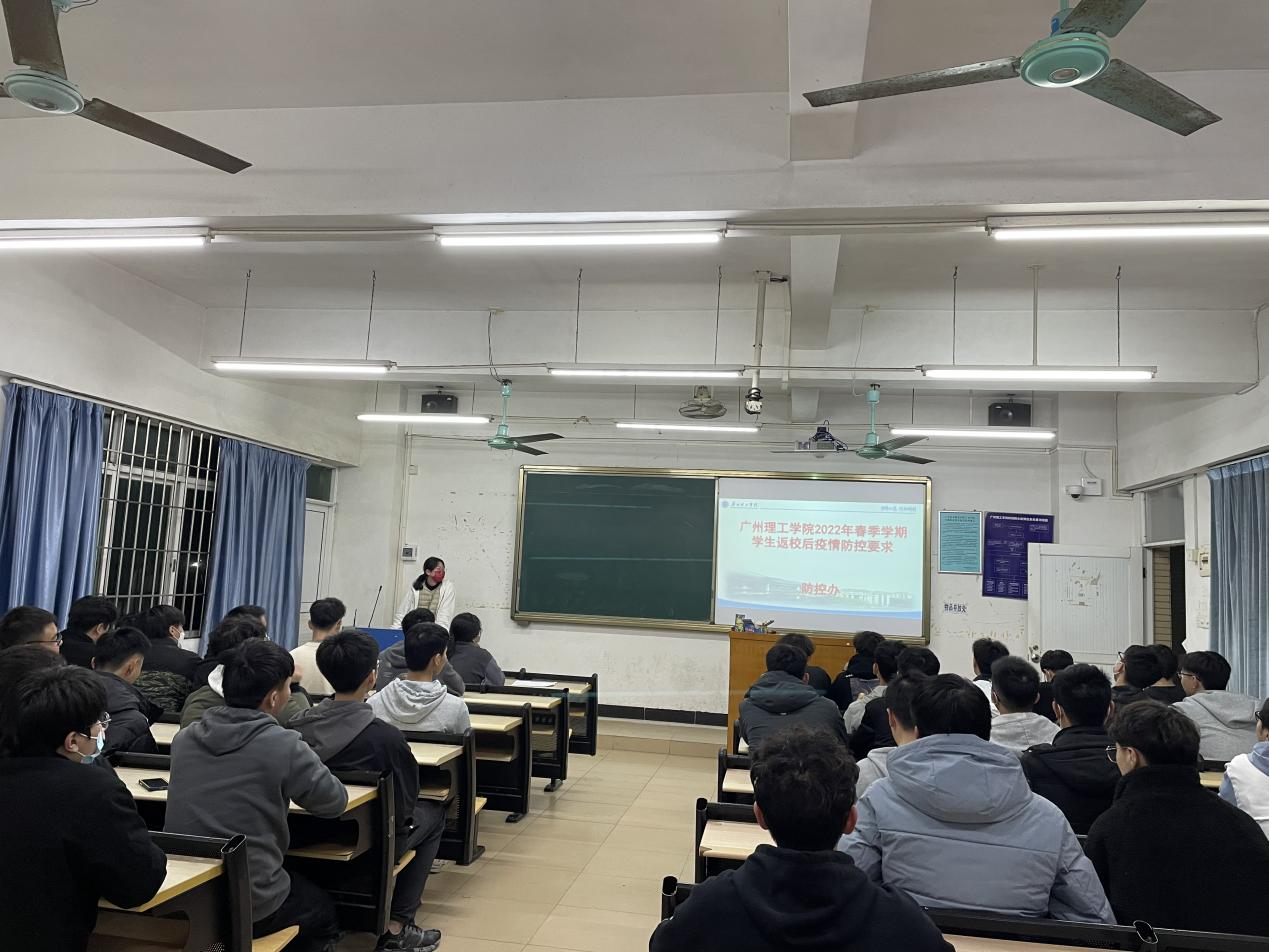 会议开始,辅导员强调疫情防控的重要性以及校园封闭管理的纪律,传达学校春季开学工作会议精神,希望同学们能自觉遵守学校疫情防控期间的纪律,增强个人卫生和安全防控的意识,确保学生返校能健康安全的学习。