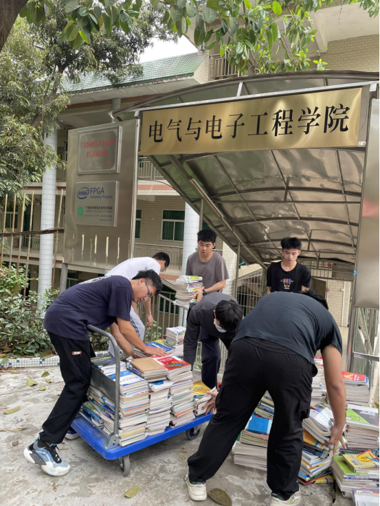 下午3点,志愿者们于电子楼集合完毕。谢燕惠和陈新喜老师进行简单的搬运注意事项说明和清洁人员的安排后,志愿者们有序地去到各自被分配的办公室对因搬迁办公室遗留的图书进行分类、整理、搬运。大家配合默契、分工明确,将整理出来的图书分批运往图书馆归还,相互配合开展清洁活动。志愿者们不怕脏不怕累,个个精神饱满,劳动热情高涨,共同协助圆满完成任务。