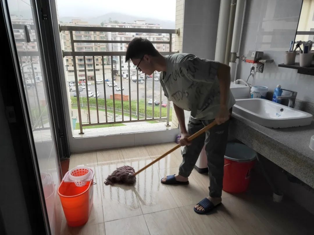 同学们接到任务,开始行动起来,大家分工合作:积极清扫宿舍垃圾、清理无用杂物、清理蜘蛛网、拖地、擦拭窗户、消毒、室内通风,各项劳动工作有条不紊的进行着。活动间隙,辅导员实地走访宿舍,了解宿舍卫生情况,提到在做好疫情防控的同时要养成健康的行为习惯,向同学们宣传公共卫生安全、传染病防治和卫生健康知识,号召同学们自觉践行文明健康、绿色环保的生活方式。