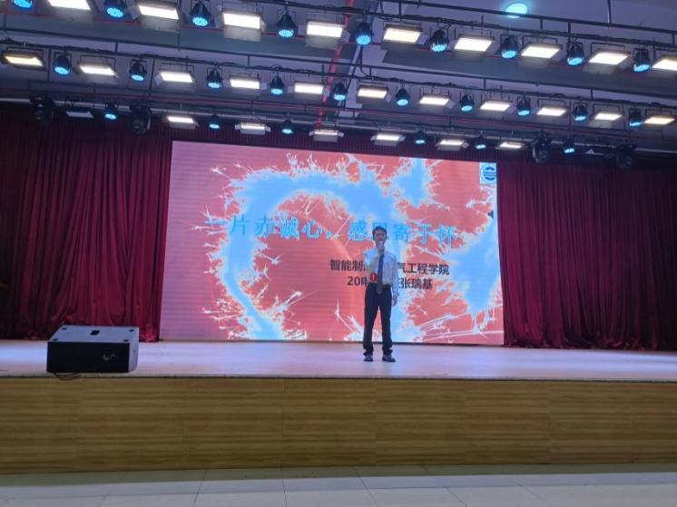 图1 20电气1班张瑞基同学演讲主题:《一片赤诚心,感恩寄于怀》