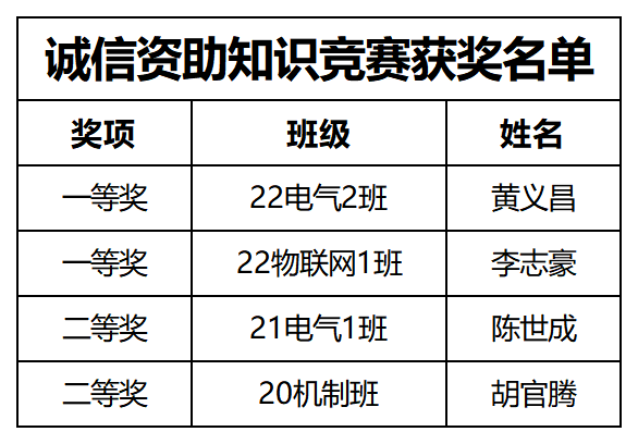 图5 诚信资助知识竞赛获奖名单