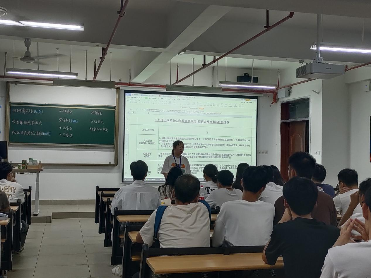 在校园安全方面,辅导员老师提醒大家扫码关注“穗安反诈”,向学生提供预防诈骗的方法和技巧。在学习方面,辅导员老师向学生们强调了合理安排时间的重要性,建议他们提前预留出上课所需的时间,并密切关注课程安排和上课通知。在宿舍卫生方面,辅导员老师呼吁大家保持个人卫生,妥善处理垃圾,遵守宿舍规章制度,共同维护宿舍的整体卫生和安全。随后,各班开始进行班干部选举活动。参选班干部的同学们逐一上台进行竞选演讲,秉持公平公正原则,班委候选人由每位同学投票选出。