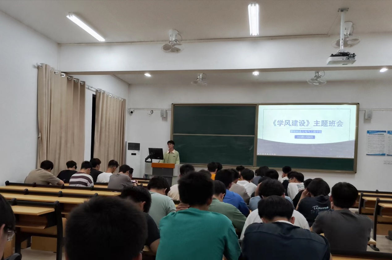 为了扎实推进学院学风建设,助力学生树立良好的学习态度,提高同学学习积极性和主动性,3月24日晚智能制造与电气工程学院全体2023级同学在惠州校区教学楼召开“学风建设”主题班会,班会由各班辅导员老师主持、班长主讲,组织学生学习学风建设的相关知识,使学生们认识到学风建设对于强化思想政治教育的重要作用。