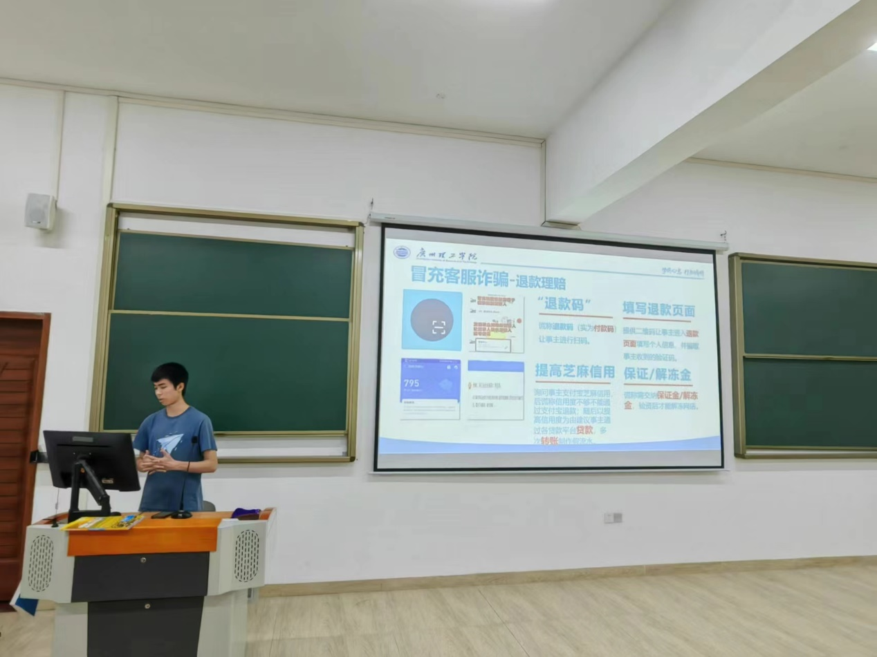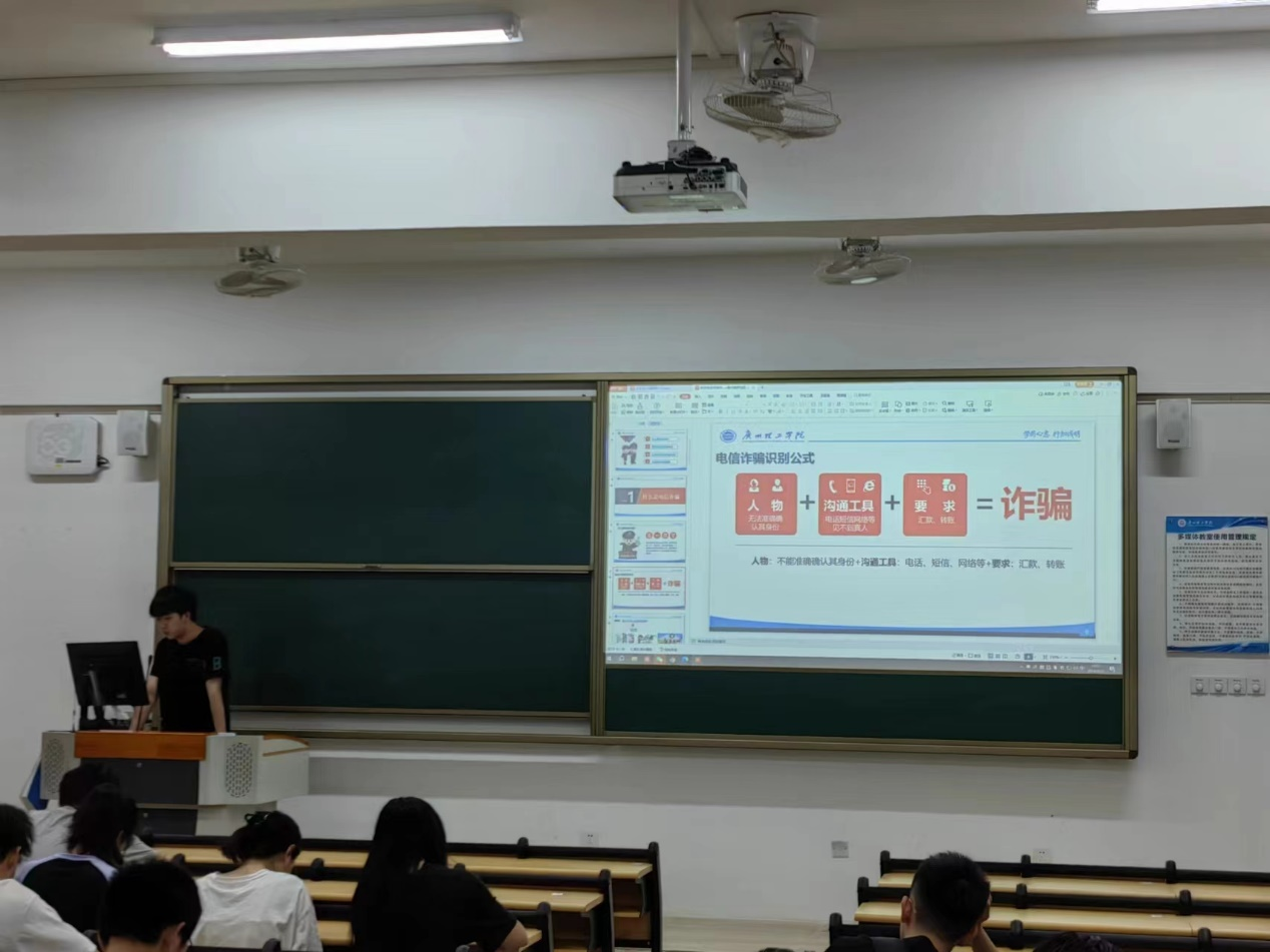 为进一步增强学生安全防范意识和自我保护能力,着力营造安全稳定和谐的校园环境,促进学生健康成长成才。4月21日晚智能制造与电气工程学院全体2023级同学在惠州校区教学楼召开“预防电信网络诈骗”主题班会,班会由各班辅导员老师主持、班长主讲,组织学生学习防范校园网络诈骗的相关知识,使学生们认识到预防网络诈骗的重要性。