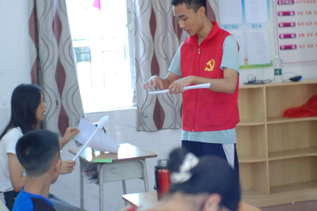 为提高小朋友们的动手能力,培养他们的耐心与毅力,2024年7月10日,广理喜阳阳志愿服务小分队开展了趣味手工课和简单手语教学课程。