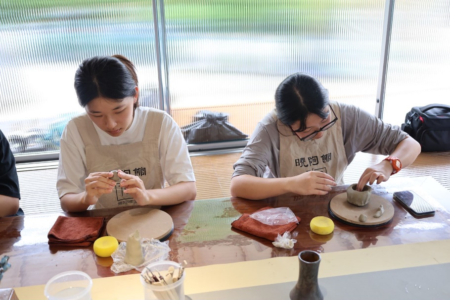 团队成员亲身体验陶塑制作