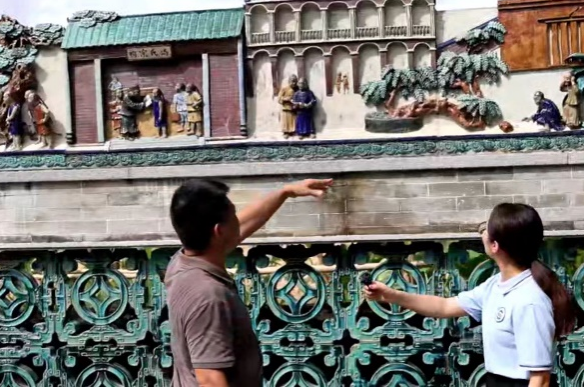 何湛泉先生介绍其展陈在孙中山故居纪念馆内的陶塑瓦脊作品