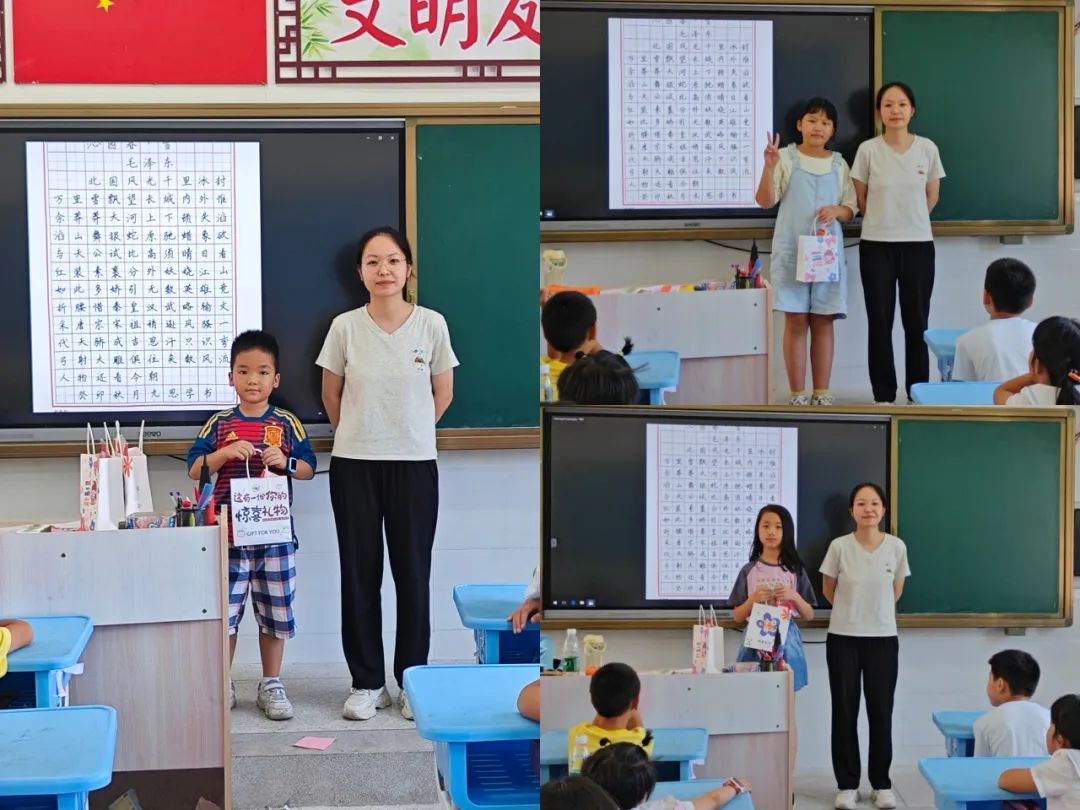 待所有小朋友完成作品后,成员们便与梅蓄小学的温晓玲老师一同认真甄选孩子们的作品。经过短暂而激烈的选拔,三张作品脱颖而出,温老师和成员们现场为三位小作者送上精心准备的小礼品。此次书法比赛不仅激发了孩子们对硬笔书法的兴趣,还让他们从诗中感受祖国的壮丽山河以及毛主席坚定不移的革命信念和坦荡宽广的胸怀境界。