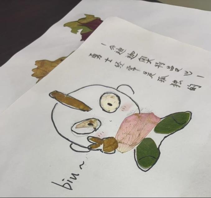 活动开始,学生们收集落叶,利用这些自然素材拼贴或摆放成各种图案和造型的卡片。这不仅展示了学生的创造力,也表达了他们的内心世界和美好憧憬。通过参与轻松愉快的创意活动,学生可以暂时放下学业的压力,享受创作的乐趣。